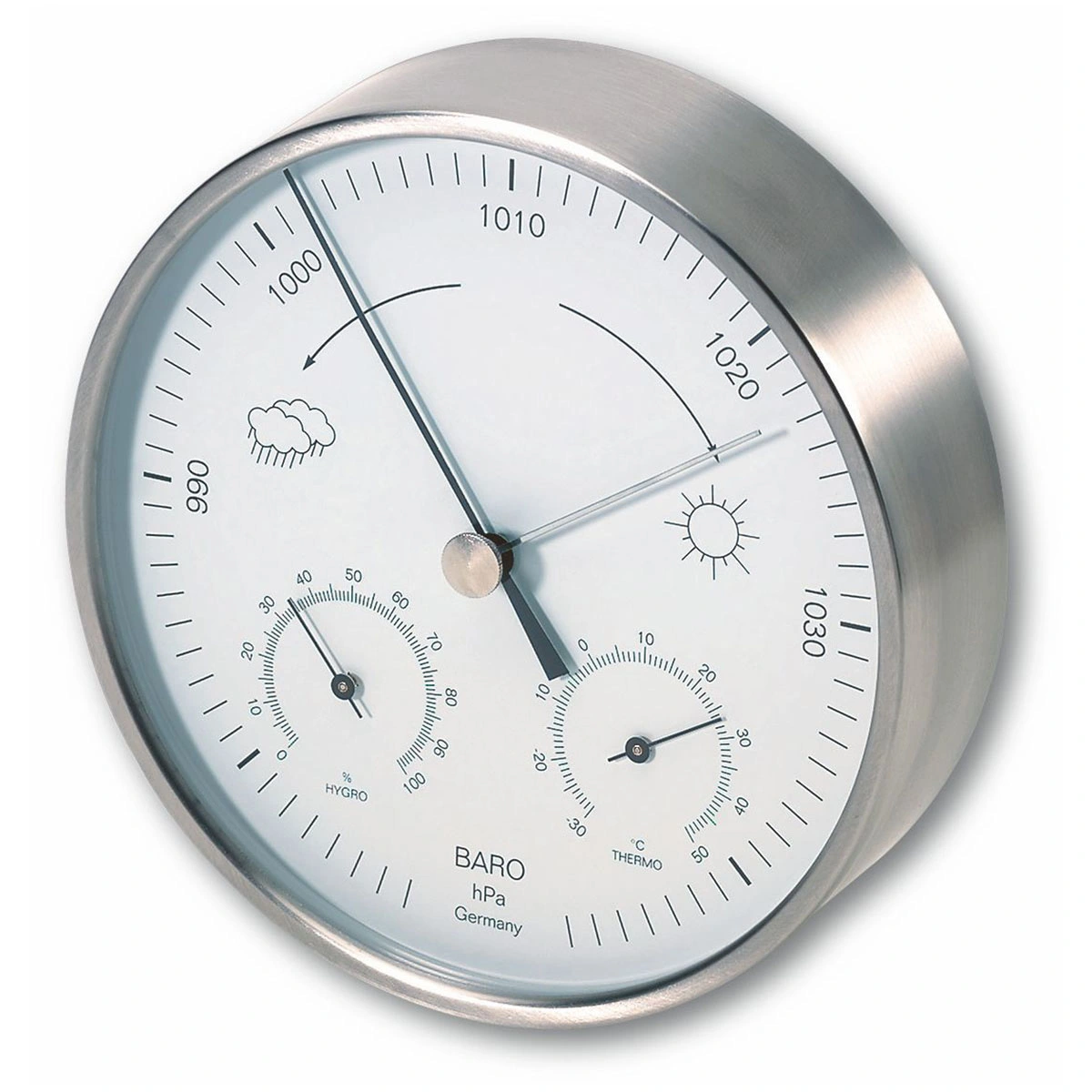 Med barometern kan du förutsäga vädertrender: stigande lufttryck tyder på förbättrat väder, medan fallande lufttryck ofta förebådar sämre väder. Termometern visar aktuell temperatur och hygrometern anger luftens relativa fuktighet, vilket tillsammans ger en bra helhetsbild av det lokala klimatet.