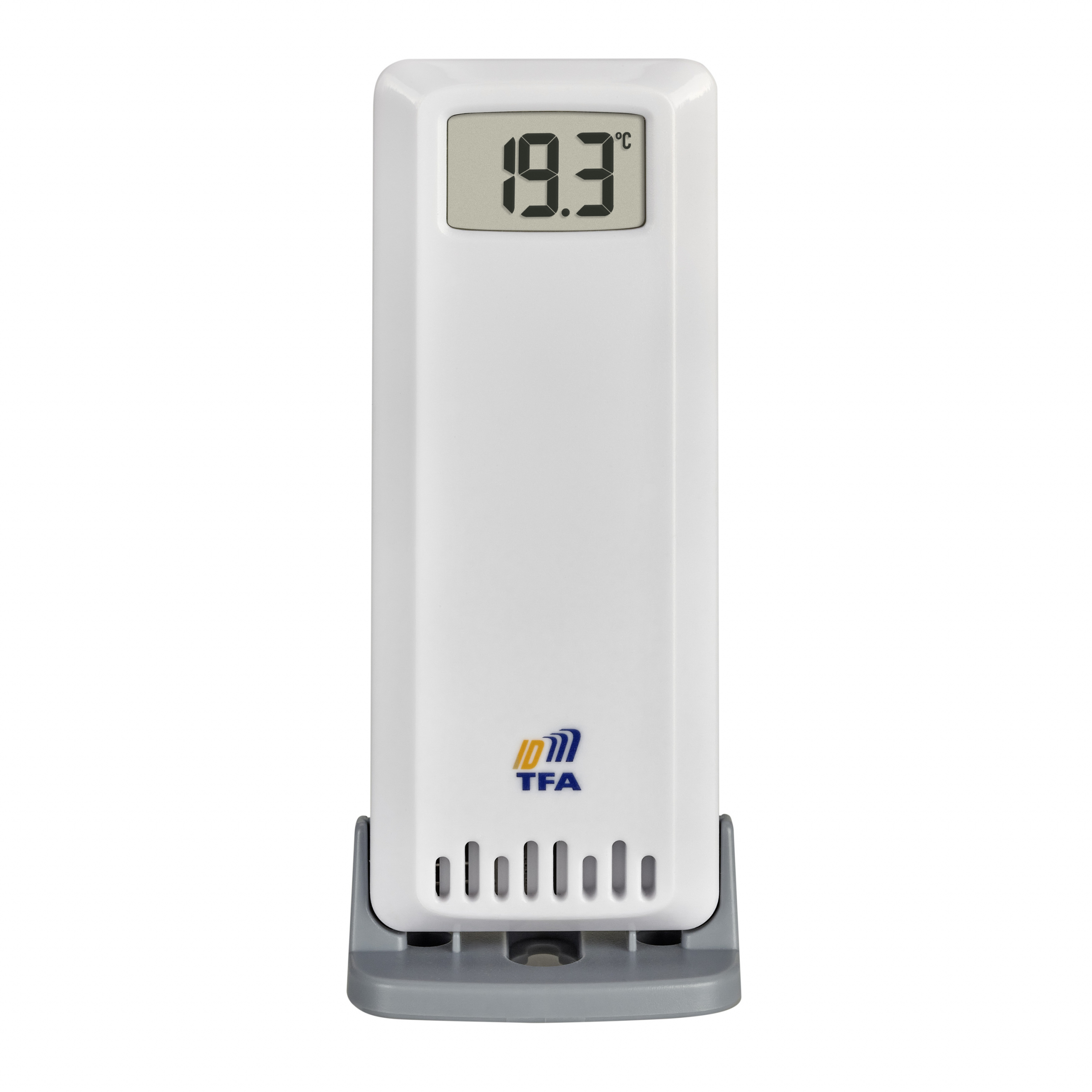 Givaren visar temperatur och luftfuktighet direkt på enheten med alternerande visning, samtidigt som mätvärdena överförs trådlöst till kompatibla mottagare och system. Den höga noggrannheten säkerställer pålitlig och konsekvent klimatdata för processer där precision är avgörande.